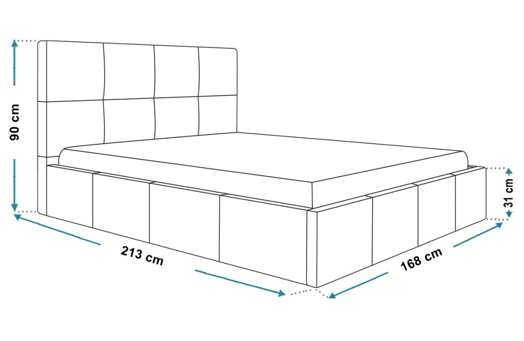 Alátámasztás: az ágyneműtartó tartalma közvetlenül a padlón támaszkodik. A kárpitozott ágykeret belső oldalai rögzítik az anyagot, és a padló maga szolgál az ágyneműtartó aljaként.
