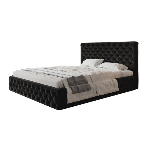A Békéscsaba kárpitos ágy a teljes felületén tűzött (Chesterfield stílusú) a romantikus luxus exkluzív darabja. Látványos megjelenése mellett az elölről nyitható ágyneműtartó teszi rendkívül praktikussá. Tökéletes választás egy olyan hálószobai fókuszponthoz, amely a pompa és a praktikum elegyét keresi.