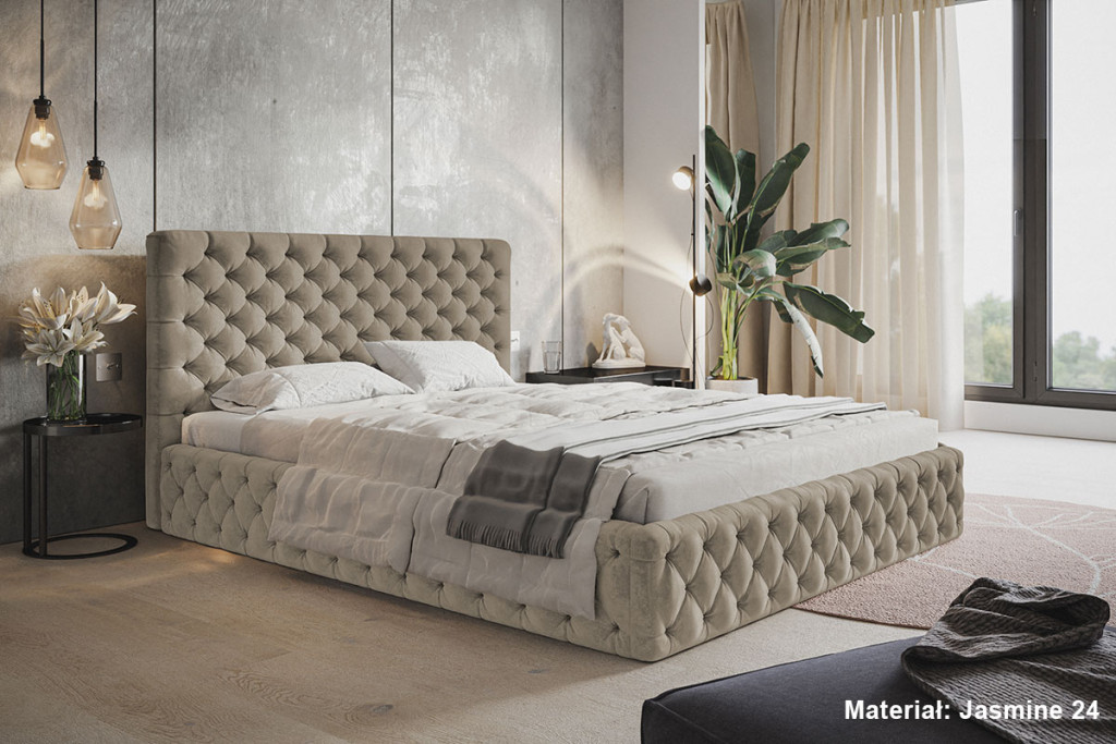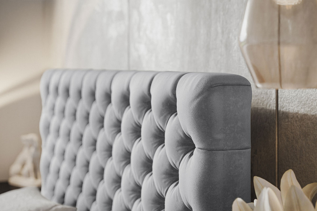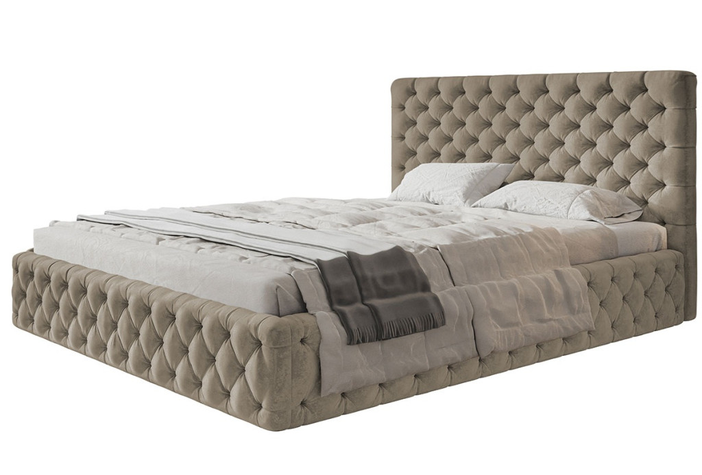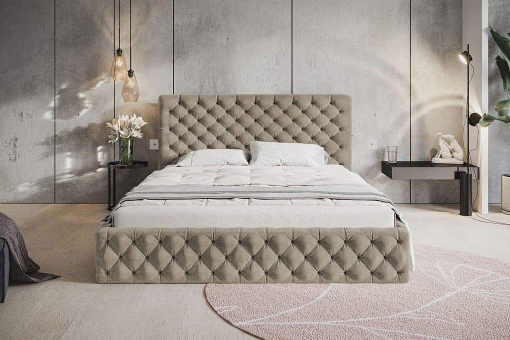 A Békéscsaba kárpitos ágy a teljes felületén tűzött (Chesterfield stílusú) a romantikus luxus exkluzív darabja. Látványos megjelenése mellett az elölről nyitható ágyneműtartó teszi rendkívül praktikussá. Tökéletes választás egy olyan hálószobai fókuszponthoz, amely a pompa és a praktikum elegyét keresi.