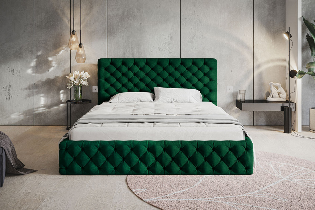 Békéscsaba ágykeret 180 X 200 fekvőfelület, ágyráccsal és ágyneműtartóval, Kronos19 sötétzöld Expressz szállítással