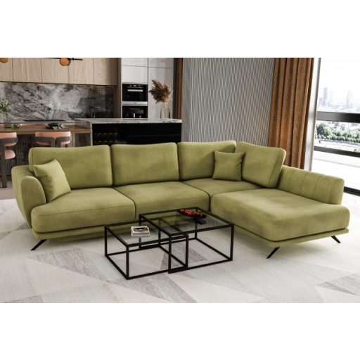 Loft stílusú ágyazható L-alakú sarokgarnitúra tágas ágyneműtartóval. A Lared egy minimalista forma, elegáns kivitelben, a modernitás szellemének megfelelően. A sítlusos design sarokülő forma könnyen illeszkedik a különféle elrendezések természetébe, és az évek során felkelti mind a háztartás tagjai, mind a vendégek figyelmét. A letisztult formatervezést a karfán lévő elegáns díszvarrások egészítik ki. Csempésszen könnyed, olasz eleganciát a nappalijába! Rendelhető jobbos és balos állásban is.