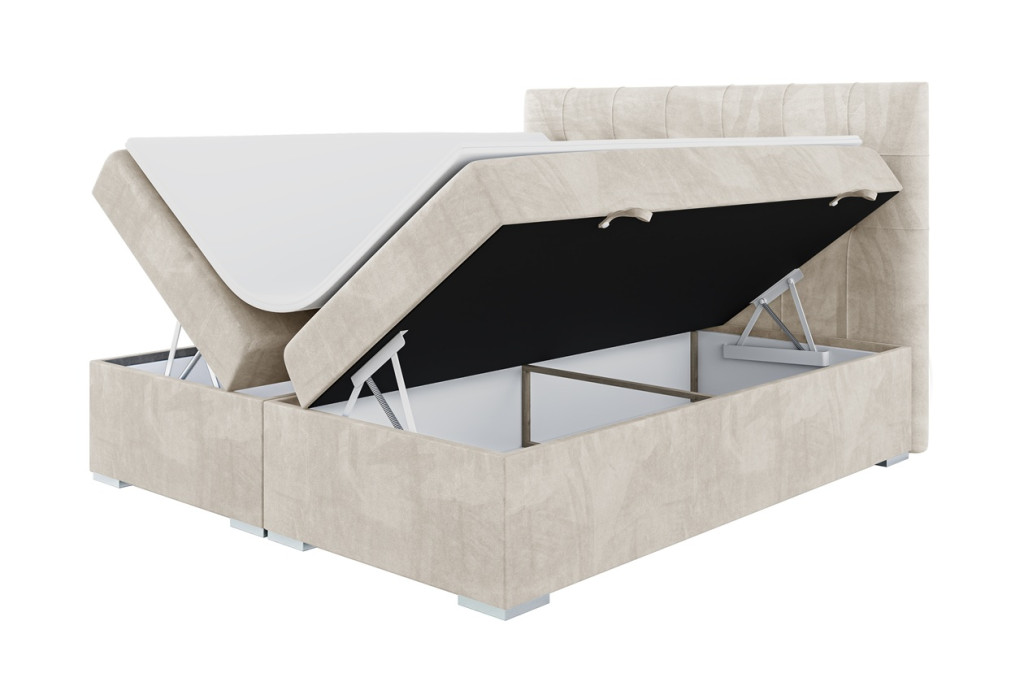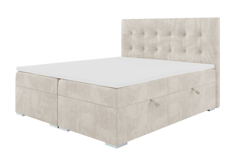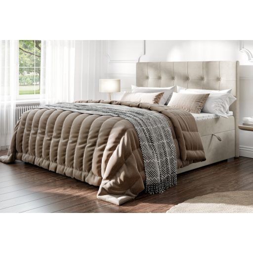Az ágyneműtartós Dennis kontinentális ágy letisztult eleganciát sugároz, melyet a két sorban gombokkal steppelt, négyzetes mintázatot formáló fejtámla tesz különlegessé.A két oldalról nyíló ágyneműtartó praktikus tárolóhelyet biztosít. A többszintes szerkezet kényelmes magasságot nyújt. Egyszerre nyújt kényelmet, stílust és funkcionalitást, így ideális választás minden modern hálószobába.