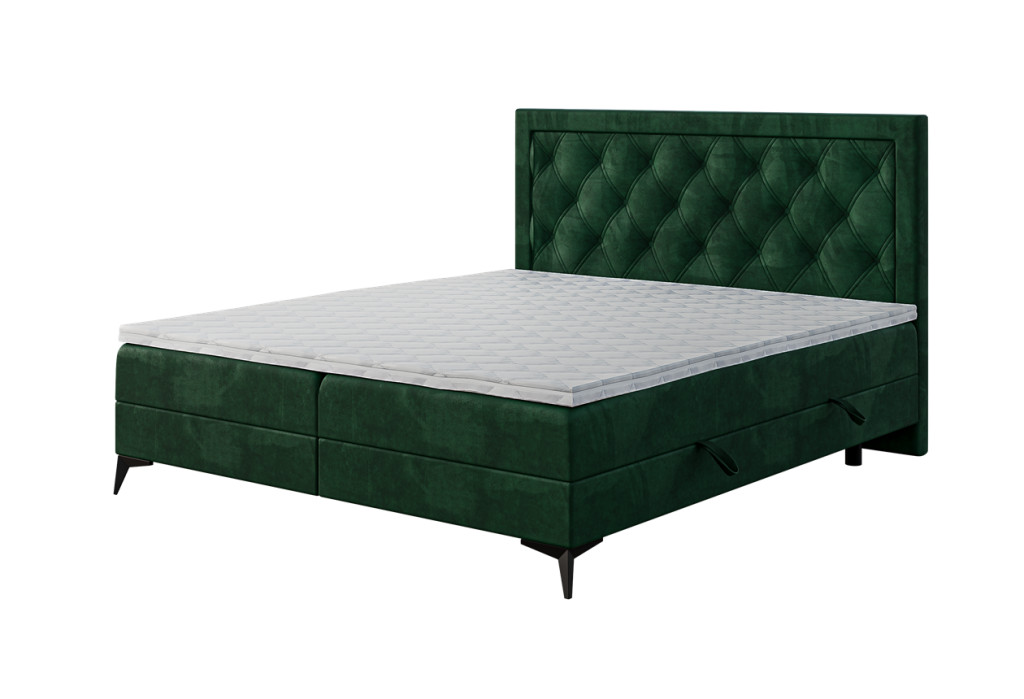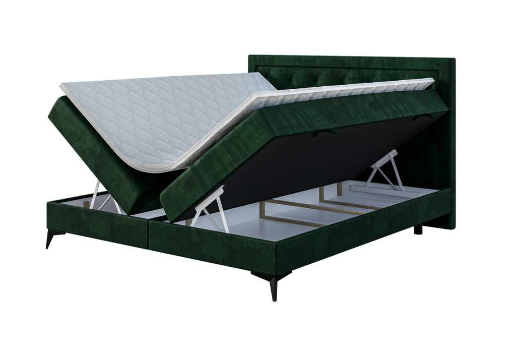 Az ágyneműtartós Dutsy kontinentális ágy fejtámlája rombusz alakú varrással és gombos steppeléssel készült, amelyet egy elegáns keret foglal körbe. Fekete, króm vagy arany színben választható 13 cm magas fém lábak modern karaktert és stabilitást adnak a bútornak. 3 féle matraccal és 3 féle fedőmatraccal rendelhető.