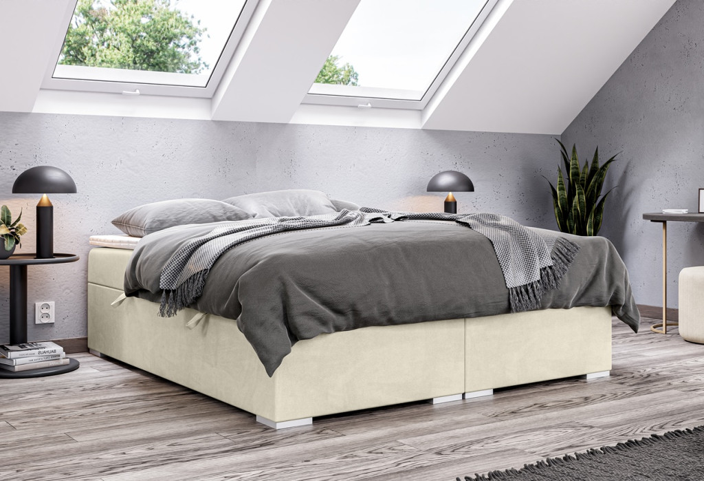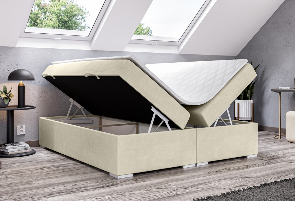 Az ágyneműtartós fejtámla nélküli kontinentális ágy modern, letisztult megjelenésével ideális választás azok számára, akik a praktikumot és a kényelmet szeretnék ötvözni egy kompakt, elegáns formában. Fejtámla nélküli kialakítása minimalista stílust képvisel, így könnyen illeszkedik bármilyen hálószobai enteriőrbe. Mély ágyneműtartóval, választható matraccal és topperrel. Ez a boxspring ágy tökéletes választás, ha helytakarékos, praktikus és modern megoldást keres, kompromisszumok nélkül a kényelem terén.