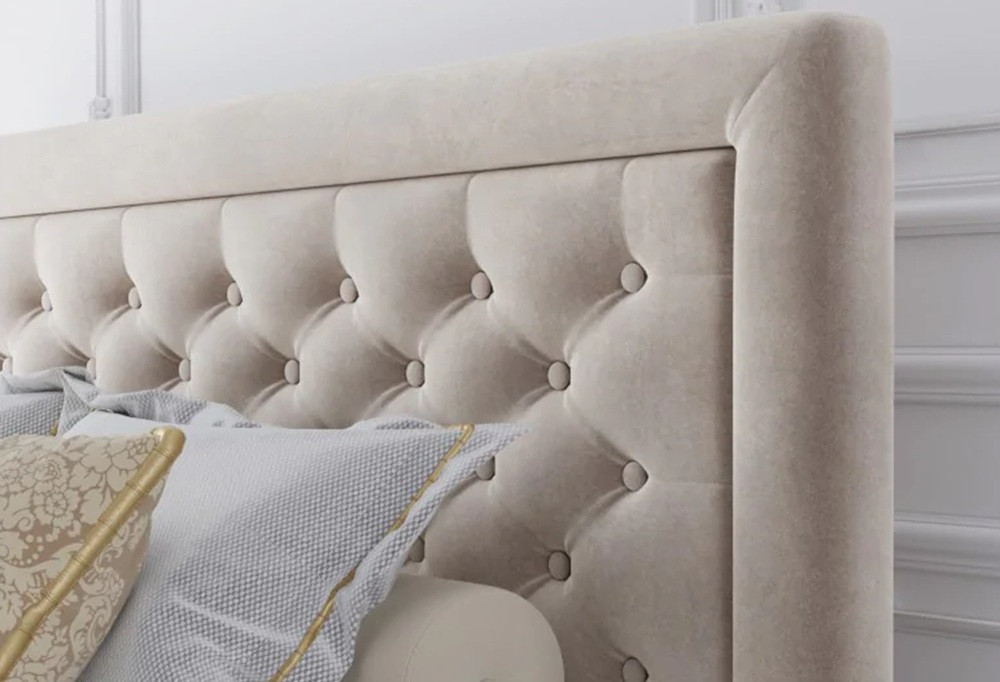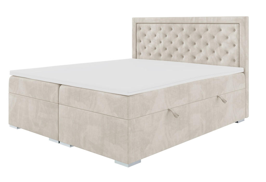 Az ágyneműtartós Glamorous kontinentális ágy eleganciát és luxust sugároz, köszönhetően a Chesterfield jellegű, gombokkal steppelt, keretbe foglalt fejtámlának, amely különleges karaktert ad a bútornak. A két oldalról nyíló ágyneműtartó praktikus tárolóhelyet biztosít. Az ágy így a stílus, a kényelem és a funkcionalitás tökéletes összhangját kínálja, ideális választás mindazoknak, akik kifinomult hálószobabútort keresnek.