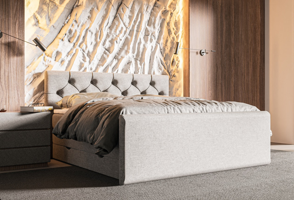 Huggo boxspring ágy ágyneműtartóval 120 X 200