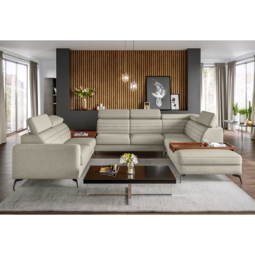 Az Amarano moduláris kanapé kifinomult vonalvezetéssel és magas használati kényelemmel rendelkezik. 12 cm magas lábak ( fekete, króm vagy arany színű) általi könnyed forma és a háttámlán vízsszintes varrás jellemzi, a további kényelemről az állítható fejtámlák gondoskodnak. 32 elemből összeállítható, akár ágyazható és ágyneműtartós funkciókkal is, így a nappali kifejezetten praktikus ülőbútora lesz.Bizonyos elemekhet rendelhető kiegészítő fa polc is. Rendelhető L-alakú és U-alakú változatban, Smart és Easy Water Clean szövetekkel is!