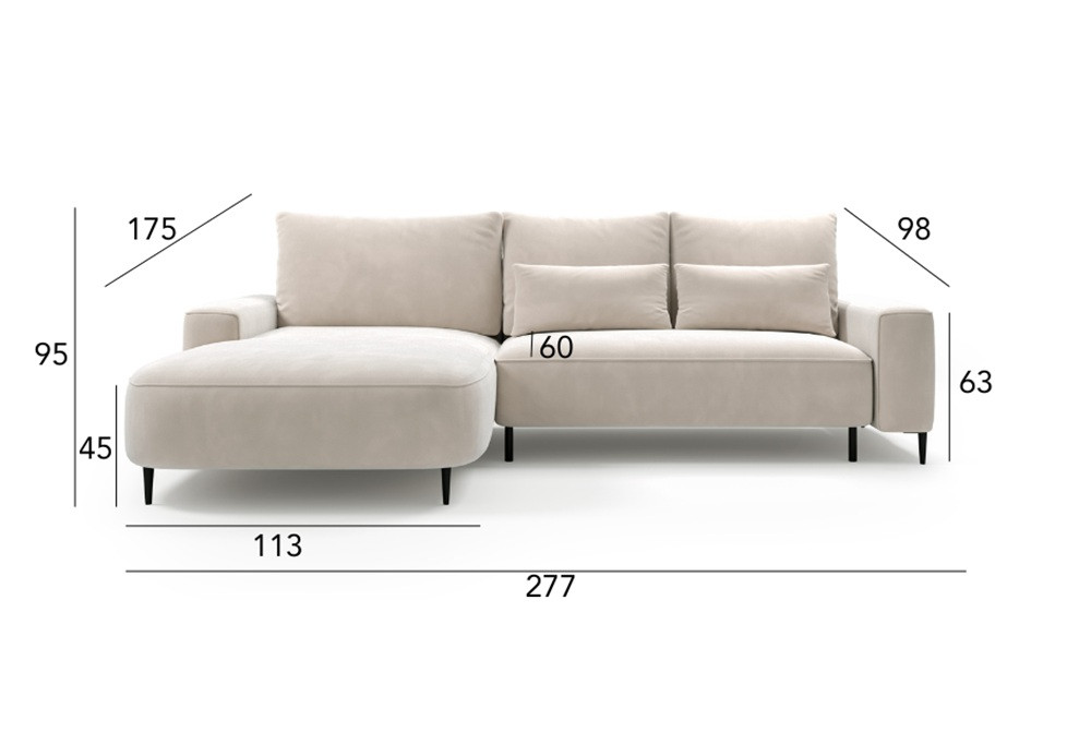 Bizzante L-alakú ülőgarnitúra ágyneműtartós és ágyazható - balos 277 cm X 175 cm