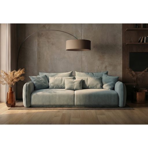 A széles, finoman ívelt karfák és az alacsony, tömör kialakítás trendi, mégis időtálló megjelenést kölcsönöznek. Szereted a kreatív megoldásokat, szeretsz kísérletezni a dekorációval, és fontos számodra, hogy a bútorod tükrözze egyéniségedet? A Pula kanapé letisztult formával rendelkezik, amelyet ízléses részletek díszítenek, így különleges karakterrel bír. A több nagyméretű hátpárna és díszpárna puha, kuckózós érzetet ad, miközben vizuálisan is otthonossá teszi.