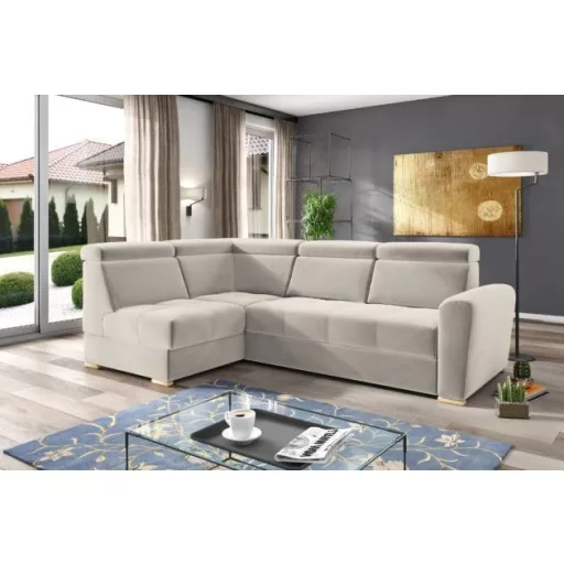 Az ágyazható kanapé a "Simple" típusú gépnek köszönhetően könnyen összecsukható; karfa modul a kanapé hatékony befejezéséhez; valamint ottomán modulok: az egyik széles és nyitott, a másik oldalsó háttámlákkal zárva. Mindegyik ottomán elem tágas ágyenműtárolóval rendelkezik.