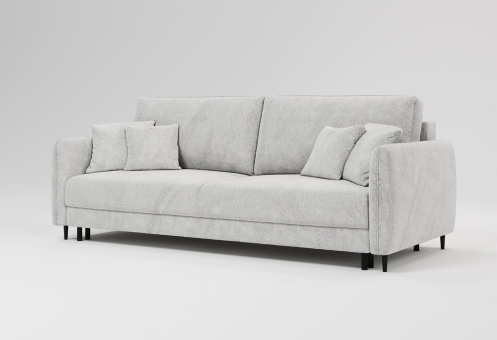 A Viggo ágyazható kanapé tökéletes választás azok számára, akik a kényelmet és a modern megjelenést egyaránt fontosnak tartják. Letisztult formavilága és harmonikus arányai miatt könnyedén illeszkedik a legtöbb nappali enteriőrbe, legyen szó skandináv, minimalista vagy modern stílusú otthonról. A rugós rásegítésű Automata System ágymechanika segítségével gyorsan fekhelyet alakíthatunk ki a nálunk éjszakázó vendégek számára, az ülőfelület alatt ágyneműtartó is található. A láb magassága: 9 cm. Rendelhető vízlepergető, állatbarát és vízzel könnyen tisztítható EasyClean huzatokkal. A dekor párnák nem részei az ajánlatnak.