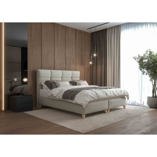 Ennek a modern szövetes ágynak szerves eleme az elölről nyitható funkcionális gázrugós ágyneműtartó, valamint a keret. Az egyedi megoldásnak köszönhetően modern kontinentális ágy jelleget kap.