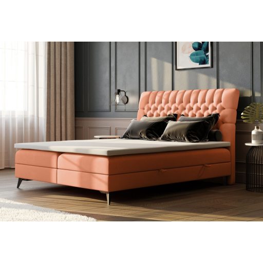 Az ágyneműtartós Noly kontinentális ágy elegáns, chesterfield stílusú, mélyt fejtámlájával tűnik ki, amely enyhén hátrahajló formájával különleges vizuális élményt nyújt. Fekete, króm vagy arany színben választható 13 cm magas fém lábak modern karaktert és stabilitást adnak a bútornak. 3 féle matraccal és 3 féle fedőmatraccal rendelhető. Tökéletes választás mindazoknak, akik a stílus, a komfort és a praktikum harmóniáját keresik modern hálószobájukba. A többszintes szerkezet kényelmes magasságot nyújt. Tökéletes választás, ha a stílus és a kényelem harmóniáját keressök hálószobánkba.