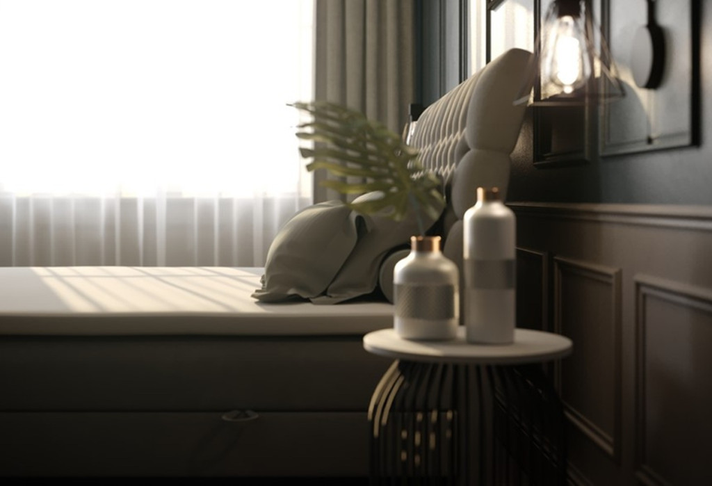 Hálószoba berendezése. Fókuszban az ágy