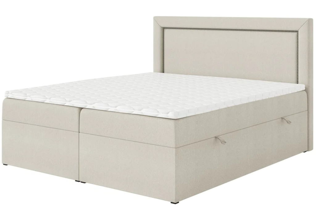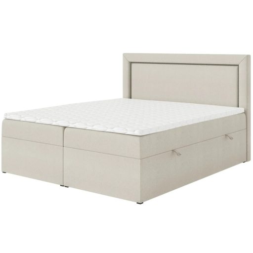 Az ágyneműtartós Nuovo kontinentális ágy egyesíti a praktikumot és az eleganciát. A fejtámlát körbefutó, ízléses díszszegecsek emelik ki, amelyek króm, arany vagy antik arany színben választhatók, így könnyen a hálószoba stílusához igazítható. Az alacsony lábak és a többszintes kialakítás ideális magasságot eredményez, miközben hangsúlyozza az ágy stílusos formavilágát. Az alacsony lábak és a többszintes szerkezet ideális magasságot biztosítanak, így a Nuovo ágy azok számára tökéletes választás, akik egyszerre keresik a kényelmet, a funkcionalitást és a kifinomult megjelenést hálószobájukban.