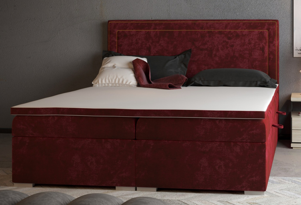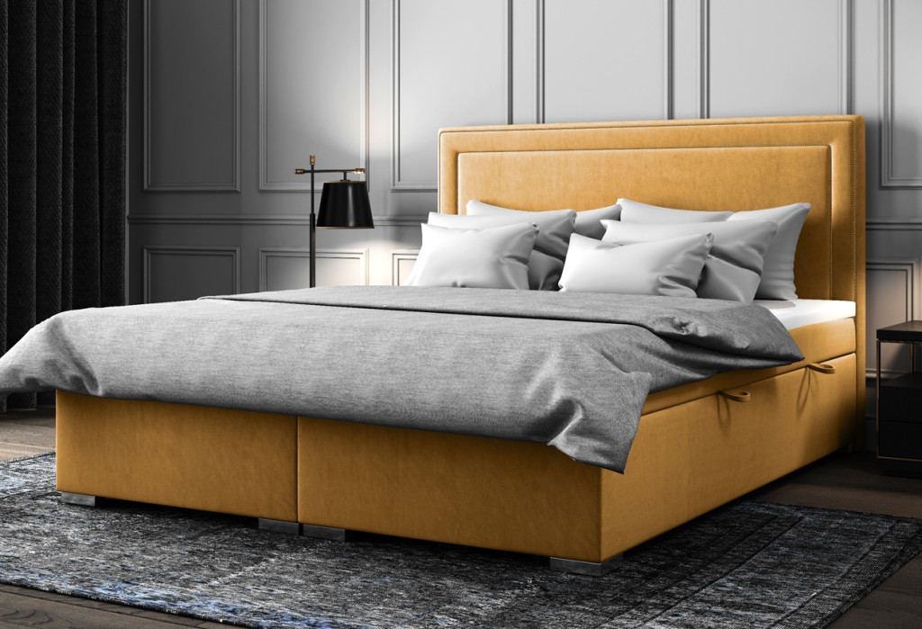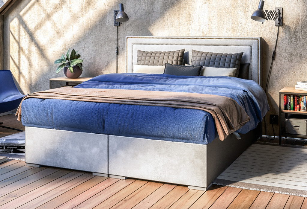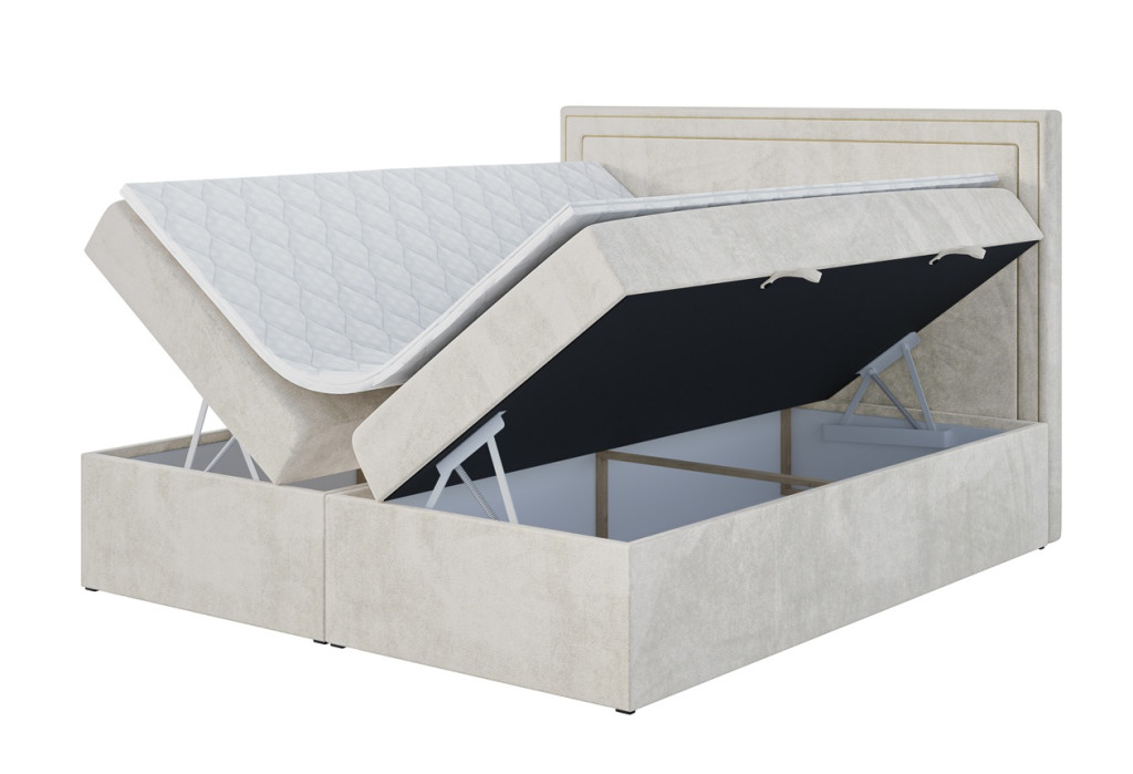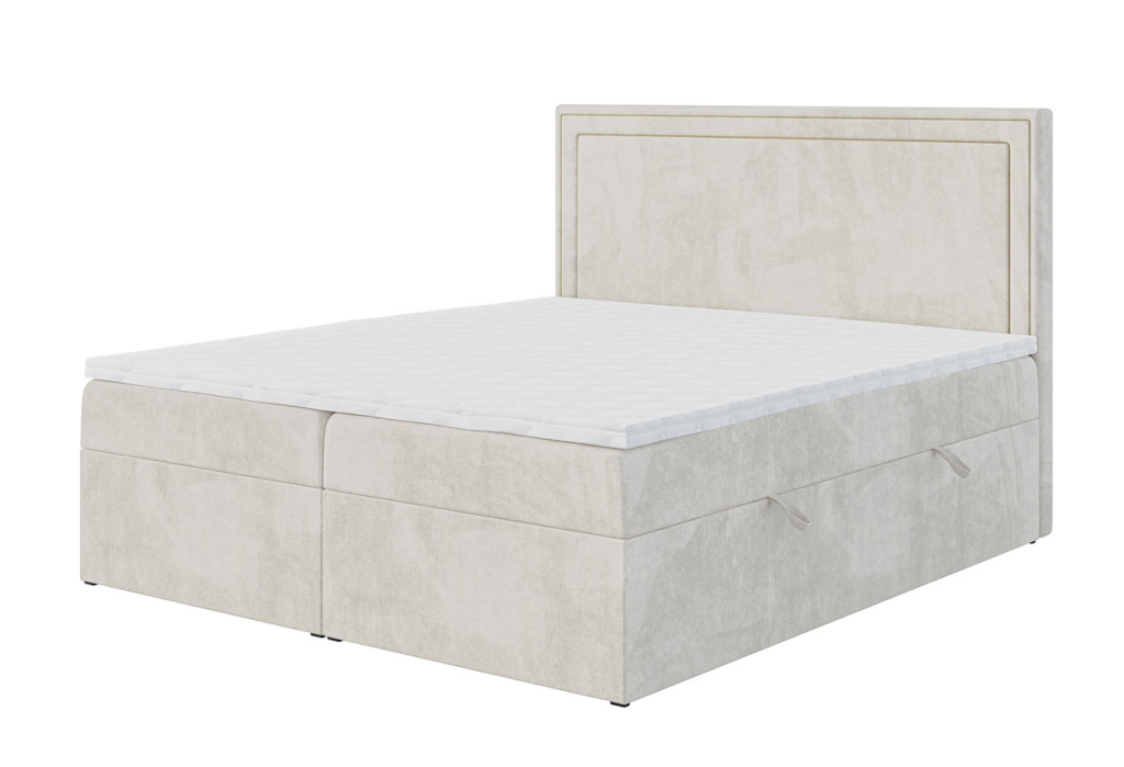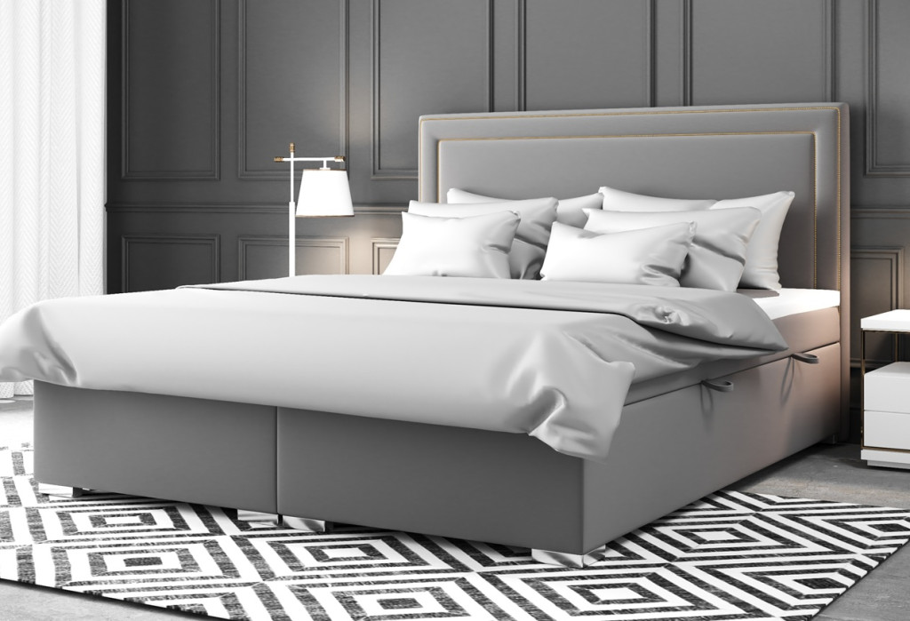 Az ágyneműtartós Quattro kontinentális ágy elegáns fejtámláját párhuzamosan futó szegecselt díszítés emeli ki, amely ezüst, arany vagy antik arany színben választható, így bármely hálószobának luxusérzetet kölcsönöz. Az alacsony lábak és a többszintes kialakítás ideális magasságot eredményez, miközben hangsúlyozza az ágy stílusos formavilágát. Az alacsony lábak és a többszintes szerkezet ideális magasságot biztosítanak, így a Quattro ágy remek választás mindazoknak, akik a kényelmet, a funkcionalitást és a kifinomult stílust szeretnék ötvözni hálószobájukban.