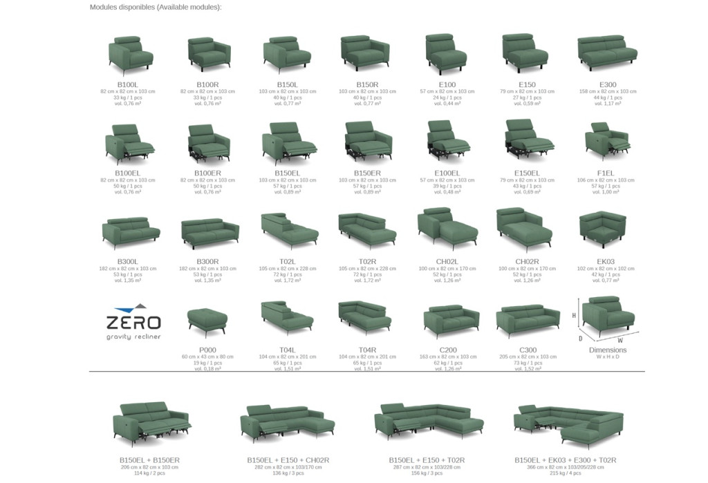 A reclinerek (lábtartós relax fotelek illetve kanapék) kézi és elektromos kivitelben is kaphatók, illetve kanapéba és sarok ülőgarnitúrákhoz is rendelhetőek.