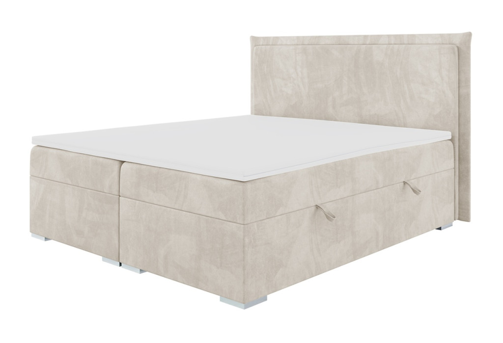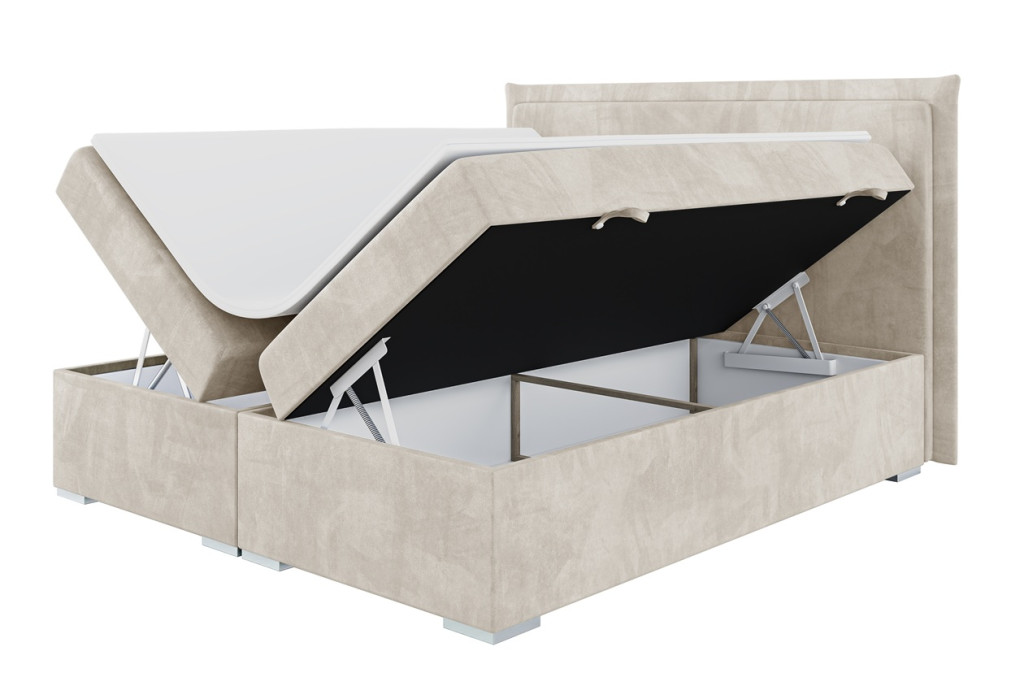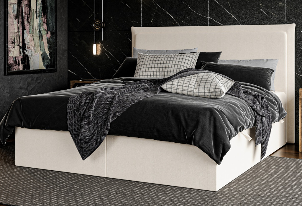 Az ágyneműtartós Torien kontinentális ágy elegáns megjelenésével és kifinomult részleteivel válik a hálószoba központi elemévé. A széles szegéllyel díszített fejtámla különleges karaktert és egyedi stílust kölcsönöz az ágynak, miközben harmonikusan illeszkedik a modern és klasszikus enteriőrökbe egyaránt. Az alacsony lábak és a többszintes kialakítás ideális magasságot eredményez, miközben hangsúlyozza az ágy stílusos formavilágát. Az alacsony lábak és a többszintes szerkezet ideális magasságot biztosítanak, így a Torien ágy tökéletes választás mindazok számára, akik a funkcionalitás, a kényelem és az elegancia harmonikus egységét keresik hálószobájukban.