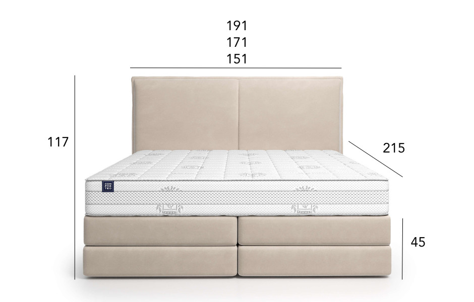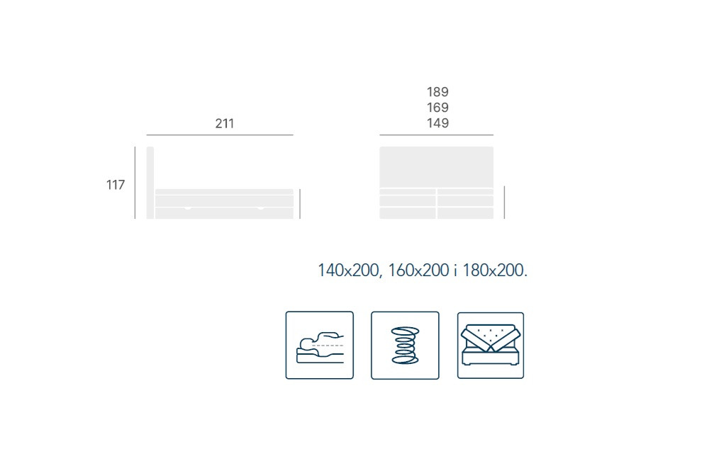 Három méretben: 140 X 200, 160X200 és 180X200 cm fekvőfelülettel, valamint szortimentünkből bármilyen matraccal rendelhető kedvezménnyel. Javasolt matrac: 7 zónás táskarugós matrac.