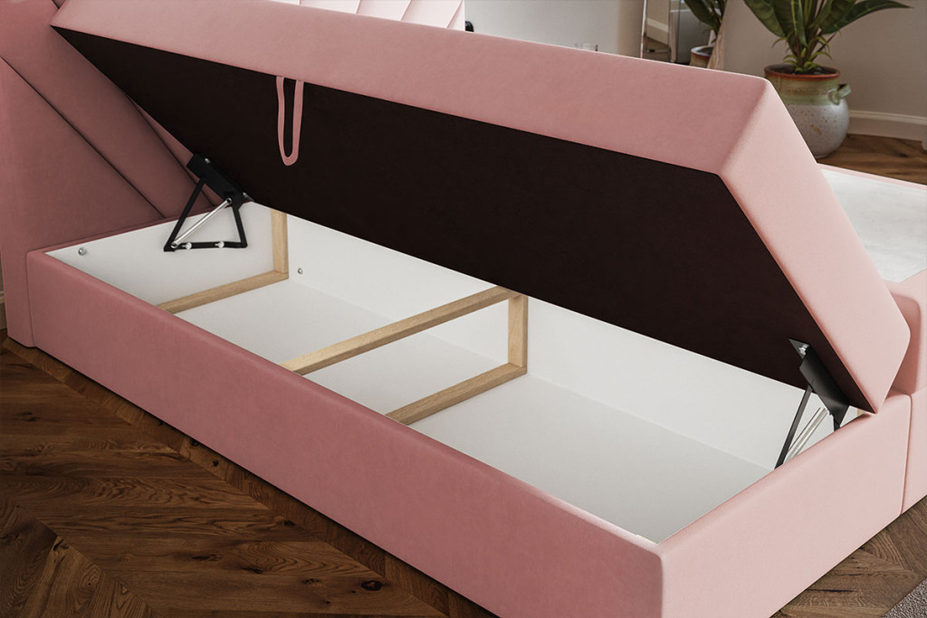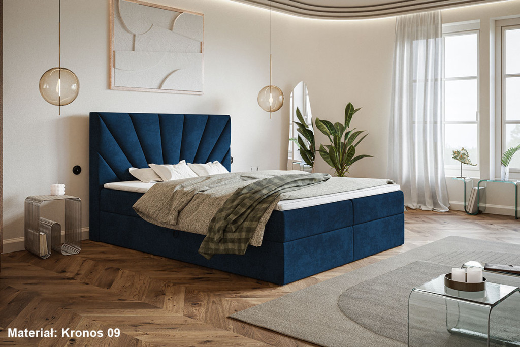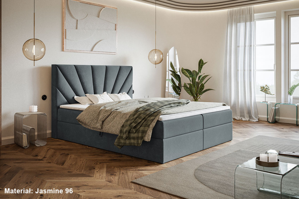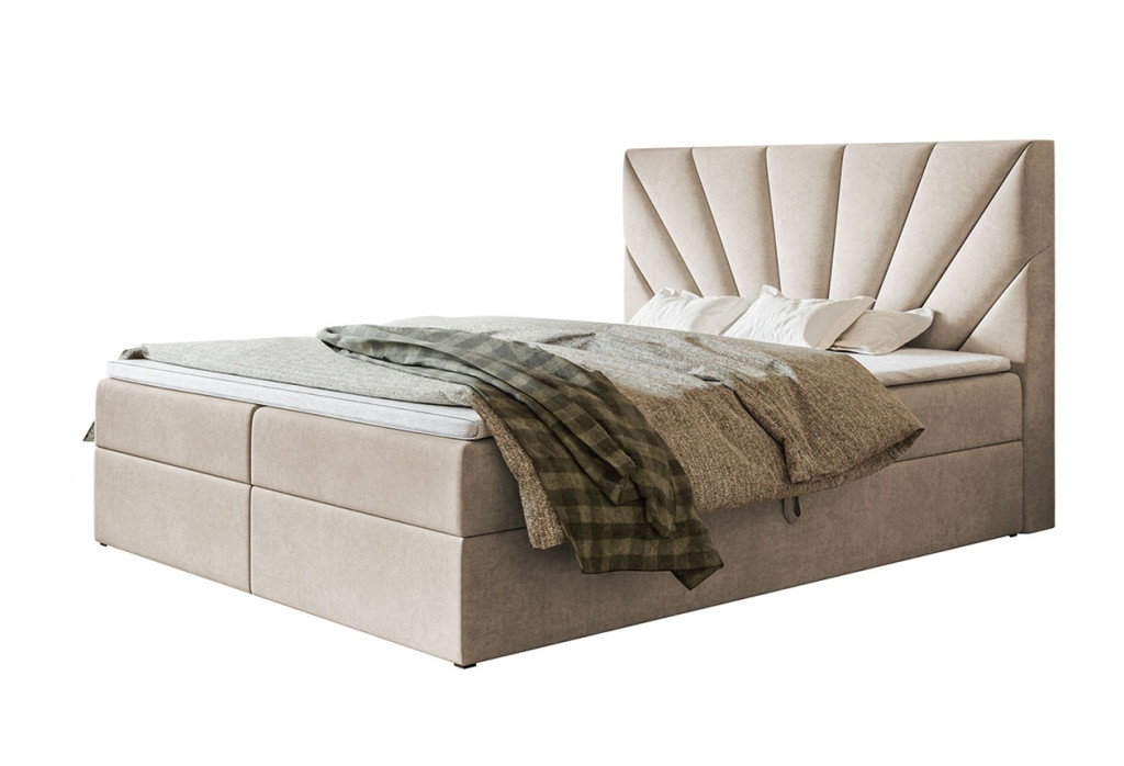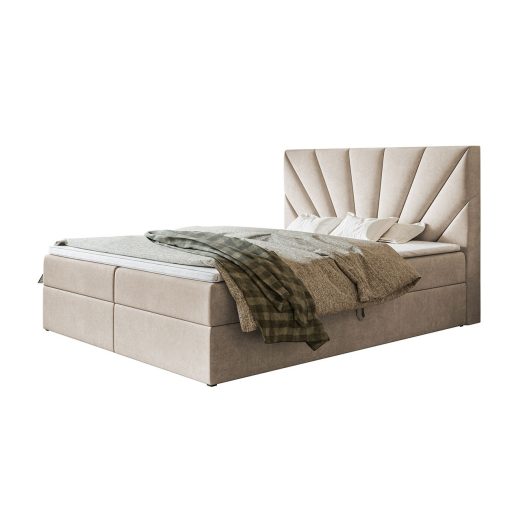 A Veszprém ágy ágyneműtartóval legszembetűnőbb eleme a magas, dekoratív fejtámla, melynek jellegzetessége a sugaras, kagyló- vagy legyezőszerű tűzés. Ez a mintázat elegáns és modern megjelenést kölcsönöz az ágynak, és egyfajta luxusérzetet ad a hálószobának. Az ágyneműtartó két oldalról nyitható, funkcionális ágyneműtartóval van ellátva, így bőséges tárolóhelyet kínál. Az ágy bonell- vagy 7 zónás táskarugós matraccal is rendelhető, igény szerint topperrel kiegészítve, amely tovább növeli a komfortérzetet és biztosítja a pihentető alvást. A fedőmatracok magassága kb 3 cm, de fedőmatrac szortimentünkből akár 6 cm magas toppert is választhat. Az ülésmagasság 45 cm, ami kényelmes ülésmagasságot biztosít.