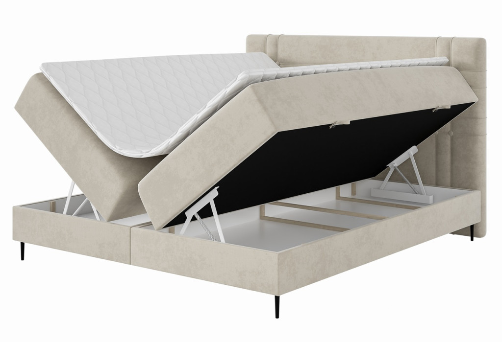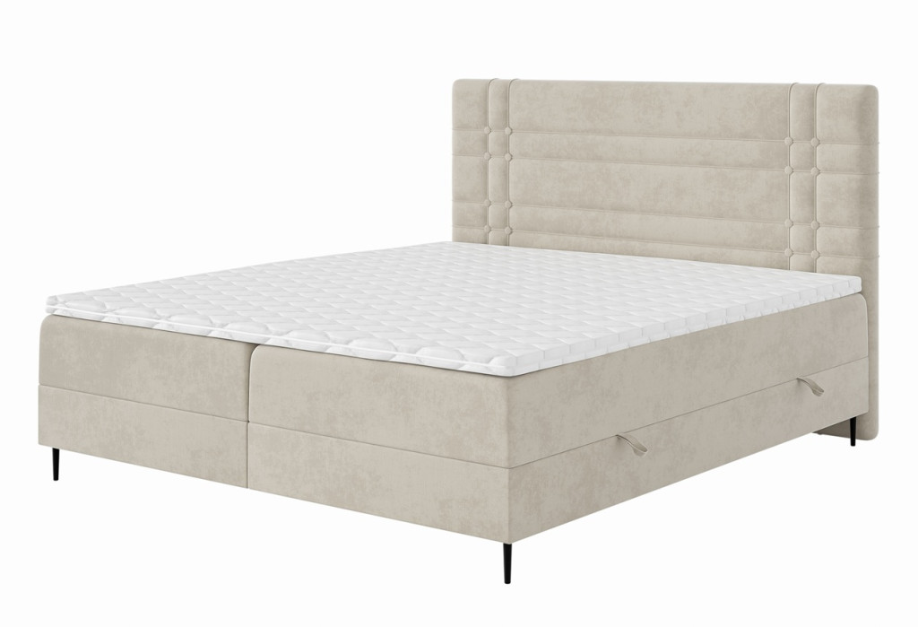 Az ágyneműtartós Vilian kontinentális ágy a modern stílus és az időtlen elegancia tökéletes harmóniáját képviseli, így bármely hálószobának kifinomult kiegészítője lehet. Különleges fejtámláját függőleges és vízszintes varrások, valamint aprólékosan elhelyezett steppelt gombok díszítik, amelyek karaktert és vizuális mélységet adnak az ágynak. Az alacsony lábak és a többszintes kialakítás ideális magasságot eredményez, miközben hangsúlyozza az ágy stílusos formavilágát. Az alacsony lábak és a többszintes szerkezet ideális magasságot biztosítanak, így a Vilian ágy ideális választás azok számára, akik a kényelem, a tartósság és az elegancia tökéletes egyensúlyát keresik hálószobájukban.